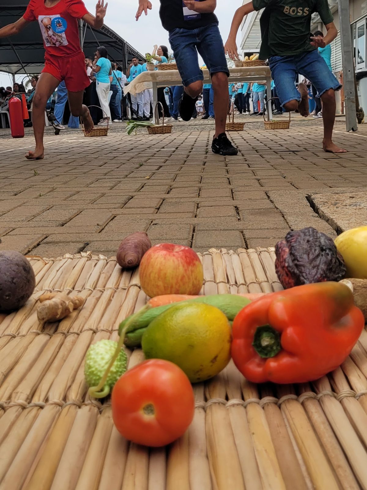A corrida de legumes é pensada especialmente para o público infantil: dinâmica, alegre e educativa. No centro da atividade, montamos uma “horta” simbólica com diferentes legumes. Ao ouvir o nome de um deles, as crianças correm até a horta, identificam o alimento solicitado e o levam de volta para a base. Cada rodada é um momento de movimento, descoberta e desafio. Além de brincar e se divertir, os pequenos aprendem a reconhecer diferentes legumes e compreendem melhor a importância dos alimentos naturais para uma vida saudável.