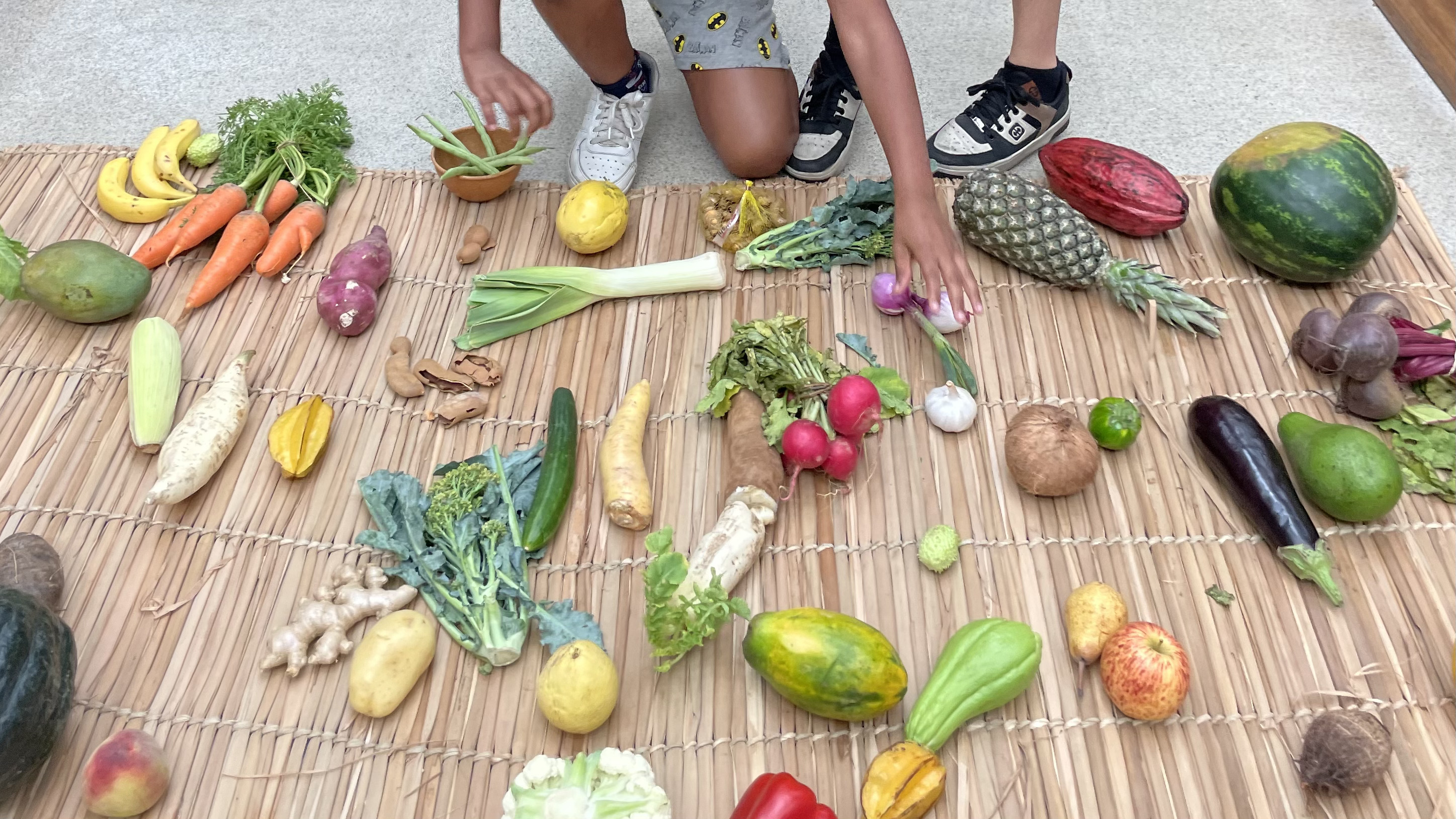 Durante a brincadeira, diversas frutas, vegetais e ervas são dispostas em um espaço central, formando uma “horta” simbólica. Ao ouvir o nome de um alimento, as crianças correm até o local, identificam corretamente o legume, fruta ou erva solicitado e o levam de volta para a “base”.