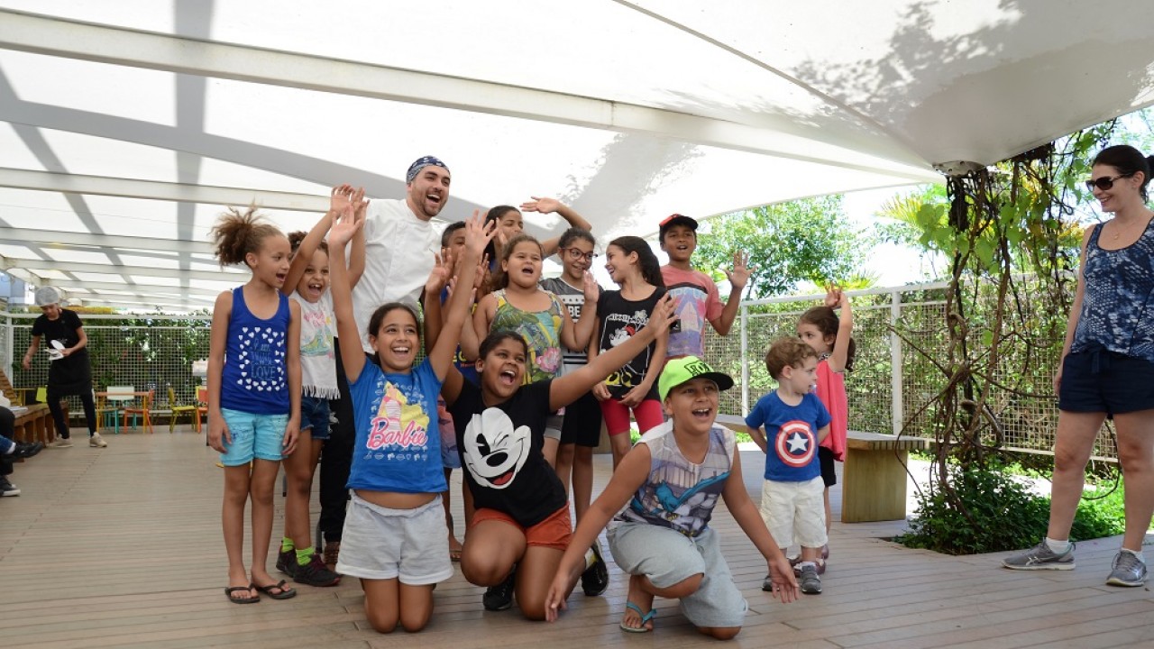 Luiza, de 5 anos, era uma das crianças atentas em volta da grande mesa, instalada no deck infantil da biblioteca. Ao lado de uma grande turma que veio de Cotia (SP), ela integrou-se com os demais e aproveitou o momento para degustar as guloseimas e aprender sobre os alimentos.