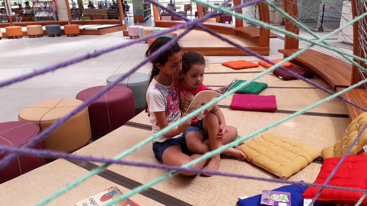 Os quatro estiveram na BVL em uma tarde de folga de Cristiane e Saulo. O casal procura sempre incluir o passeio na rotina de lazer das pequenas. "Elas adoram aqui!", diz Cristiane, que veio de Osasco (SP) e não abre mão de incluir o acesso aos livros para as filhas.