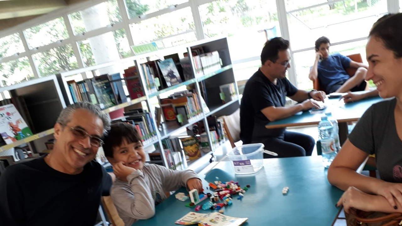 Os dois escolheram brinquedos e aproveitaram parte do dia na Ludoteca, dividindo bom papo e brincadeiras. Claro, pai e neto criaram novas memórias importantes. Lucas contou que adora Lego, lê muitos gibis e que seu super-herói preferido é Batman. Mas os dois não estavam sozinhos. Eles vieram com Camila, Joice, Henrique e Miguel, outros integrantes da família. Eles compartilharam momentos cheios de alegria.