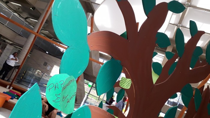 Árvore de livros e cores é "plantada" no meio da nossa Oca