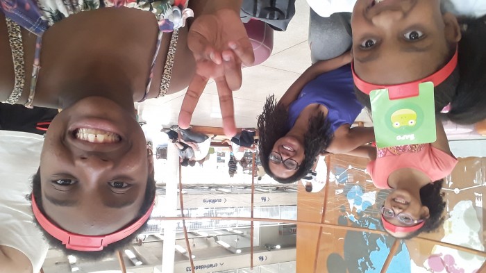 As primas Stephanie Gabrielle Feliciano Francisco, de 12 anos, Alice Cardoso Santos, de 8 anos, e Giovana Cardoso Santos, de 10 anos, vieram passar uma das tardes das férias na Biblioteca Parque Vill...